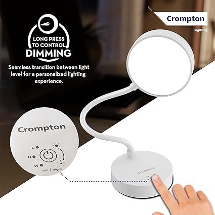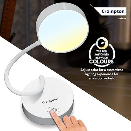 Be the first to review “Crompton Plastic Led Deskmate|Table Lamp|Desk Light|5W|Sleek & USB Rechargable|Colour Changing|Smooth Dimming|Flexible & Adjustable Neck|Flame Safe Technology|Pack of 1,White”