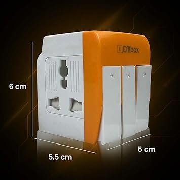 EMBOX 3 Pin Multi Plug Adapter with Individual Switch 3 Pin Plug Socket Safety Shutter Spike Buster Fuse Protected Adapter 3 Way Plug Extension for Home Office Travel-5A-250V, Pack of 1 Orange