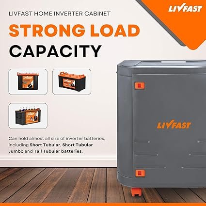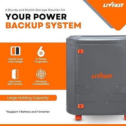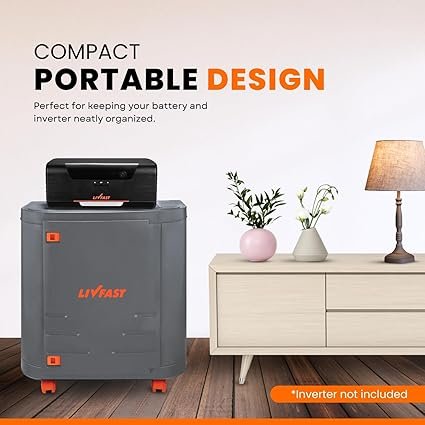 - Comprehensive Power Storage – The Livfast inverter battery stand combines dedicated storage spaces for both your inverter and battery, with a 100 kg weight capacity. This trolley is the ultimate solution for home power backup systems.