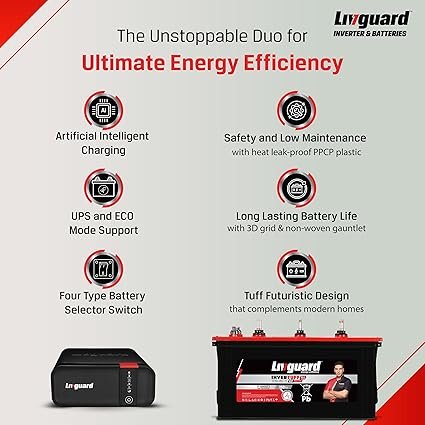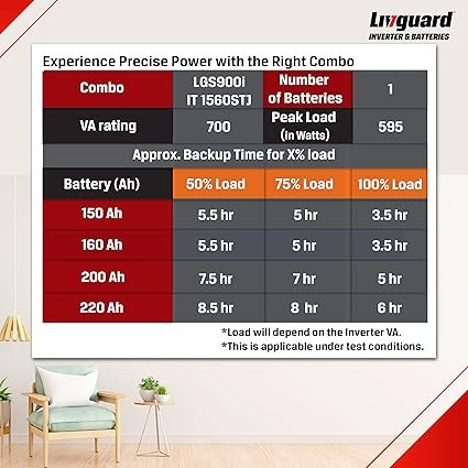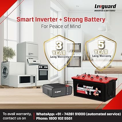 Livguard Inverter & Battery Combo |LGS900i_IT 1560STJ |LGS900i – 700 VA/12V Sine Wave Inverter |IT 1560STJ 150 Ah with 60 Months Battery Warranty |Reliable for Home, Office and Shop