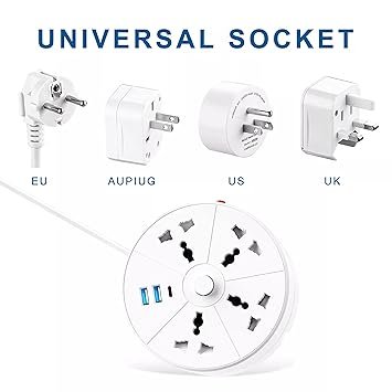 - Specifications: Colour: White, USB Ports 3 (2.4 A) (QC 3.0), AC Socket: 4 Wire: 5 mtr, Plug type: Indian 3 Pin, Volts: 240, Safety: Surge protector and safety shutters(Kids safe), Body: PP & PC (flame retardant plastic), Switch: Master LED, Wire: 3Cores Copper wire, Fittings: Copper