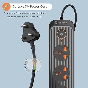 MOS Portronics Power Plate 6 with 4 USB Port + 5 Power Sockets Extension Board, 2500W Power Converter, Cord Length 3Mtr (Black)