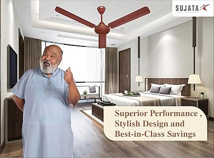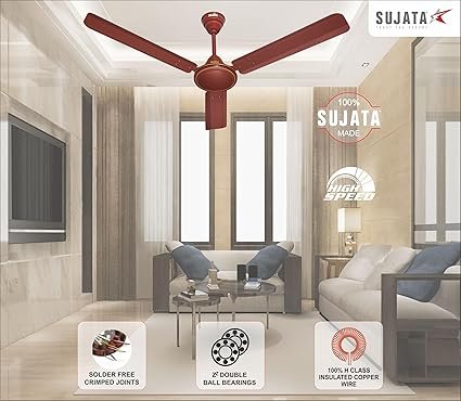 Sujata Ceiling Fan 1200mm | 3-Year Warranty | Bedroom, 100% Copper Winding, Powerful airflow, BEE Star Rated (AL 450 – Brown)