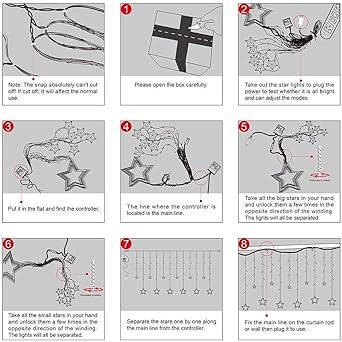 - ⭐ Easy to use : 12 Stars(2 sizes), total 138pcs LED curtain string lights, Low voltage and ul Listed power supply, directly plug in and unplug for power on and off
