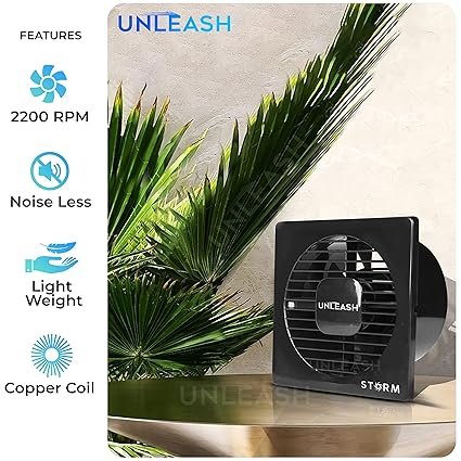 Unleash Storm 6 inch(150MM) Cut Out Size 100% Copper Motor Exhaust Fan For Kitchen,Bathroom Ventilation Axial Fan, 2 years Warranty (Black)